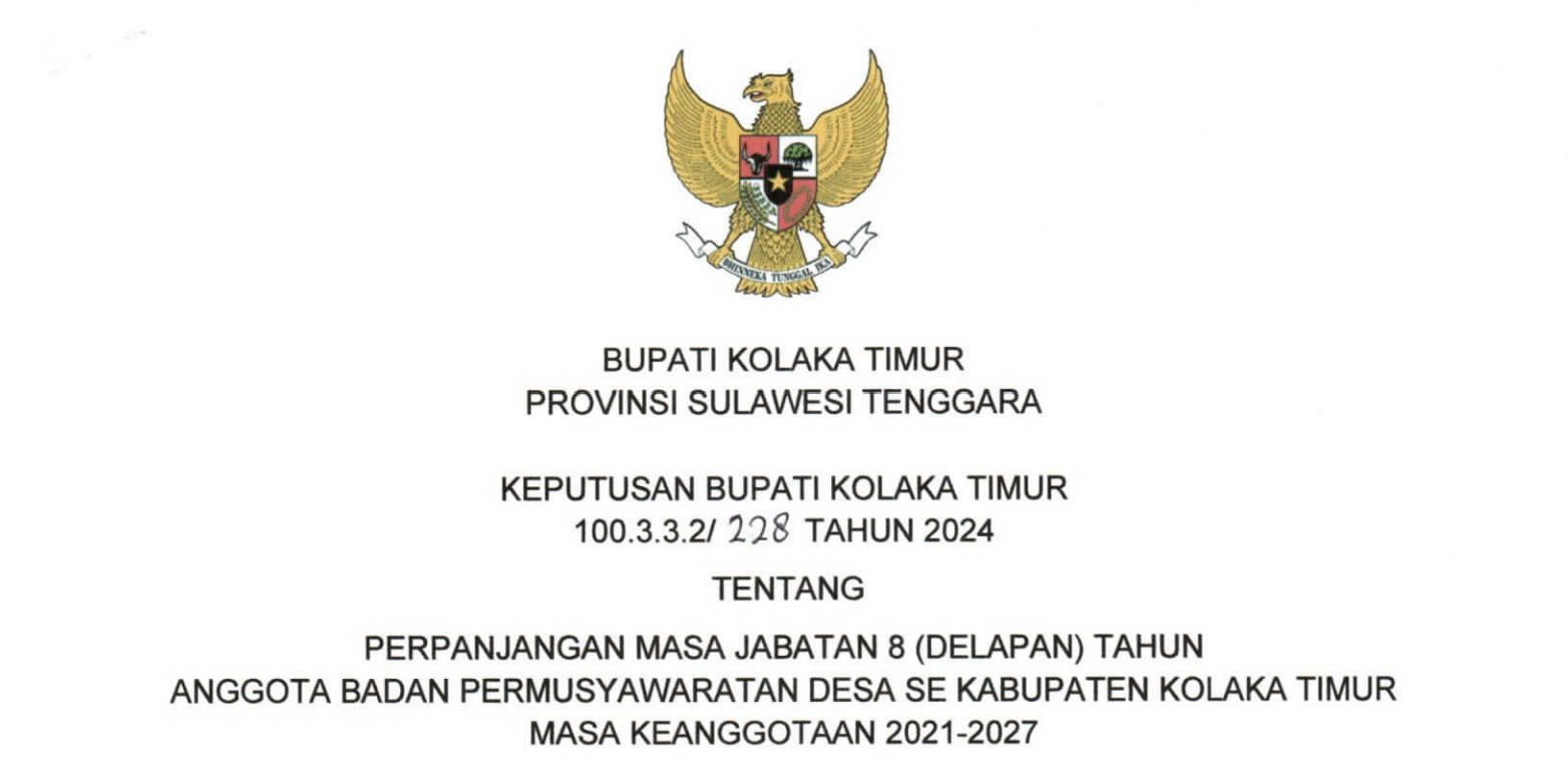 Tentang : Perpanjangan Masa Jabatan 8 Tahun Anggota Badan Permusyawaratan Desa Se Kabupaten Kolaka Timur Massa Keanggota....